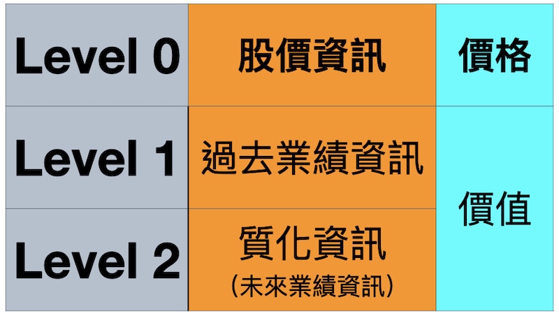 Level 0 資訊:已經 price-in (股價充分反應資訊),因為 Level 0 本身所談的就是股價。