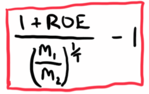 T= year, M= multiple, M1= purchase multiple, M2= multiple when selling, g= growth, r= reinvestment percentage
